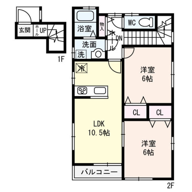 | 間取り | 2LDK(56㎡) / 2階(2階建て) |